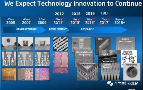 英特爾早幾年公布的路線圖,從22nm開始,公司工藝就開始延期