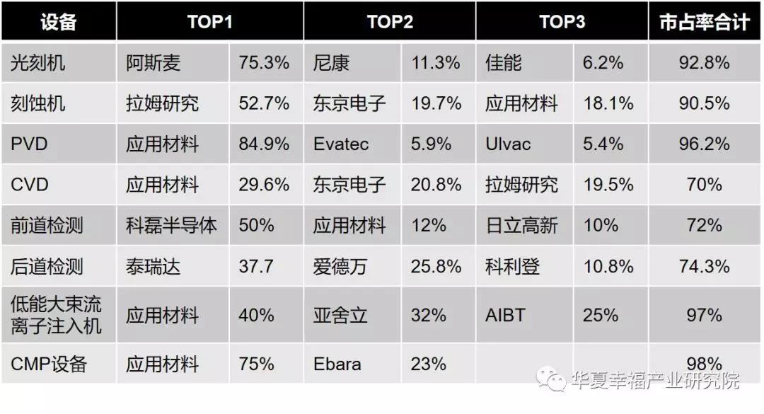 主要半導(dǎo)體設(shè)備企業(yè)