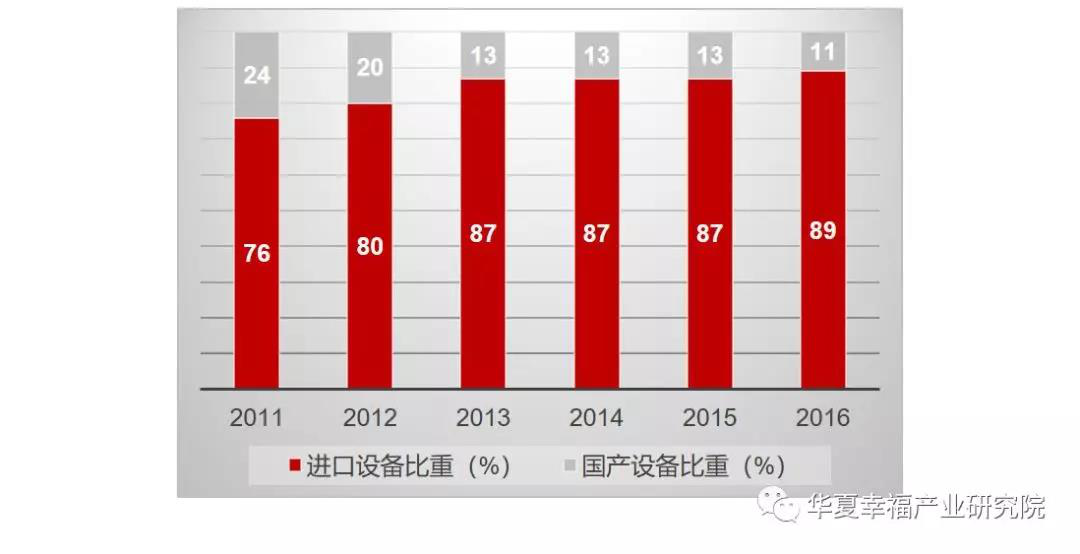 圖11. 2011-2016年我國國產(chǎn)半導(dǎo)體設(shè)備比重