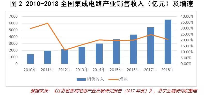 進(jìn)入21世紀(jì)的19年來,中國IC產(chǎn)業(yè)快速發(fā)展,復(fù)合年均增速達(dá)到25%,遠(yuǎn)高于全球7.6%的增長水平(參見圖2)。即便是在2018年,中國集成電路產(chǎn)業(yè)銷售收入仍高達(dá)6532億元,增長20.7%。