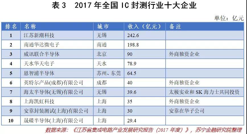 從Top10企業(yè)的收入和區(qū)域分布來看,全國IC封測業(yè)同樣高度集中于少數(shù)幾個(gè)城市。其中,無錫2家,占比33.3%;南通1家,占比23.4%;上海3家,占比11%;北京1家,占比10.6%。