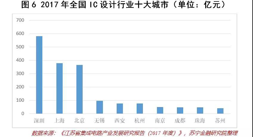 除了明顯的區(qū)域性集聚外,IC設(shè)計(jì)業(yè)高度集中在Top10城市、累計(jì)占比達(dá)到90%,尤其是深圳、上海、北京,累計(jì)占比接近70%。