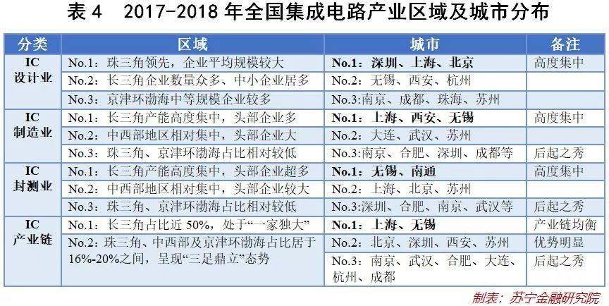 分區(qū)域來看,長三角地區(qū)IC產(chǎn)業(yè)鏈較為均衡,完整覆蓋IC設(shè)計(jì)、制造和封測三大環(huán)節(jié)。其中,尤以上海、無錫為代表,形成較為完整的產(chǎn)業(yè)鏈。珠三角地區(qū)IC設(shè)計(jì)產(chǎn)業(yè)較為發(fā)達(dá),以深圳為代表,具有難以比擬的領(lǐng)先優(yōu)勢;目前正積極布局IC制造和封測環(huán)節(jié),積極構(gòu)建全產(chǎn)業(yè)鏈閉環(huán)。京津環(huán)渤海地區(qū)IC產(chǎn)業(yè)鏈以IC設(shè)計(jì)為獨(dú)特優(yōu)勢,整體較為均衡,但規(guī)模有待提升。中西部地區(qū)IC制造業(yè)具有比較突出的優(yōu)勢,如西安、武漢、成都,但在IC設(shè)計(jì)和封測方面相對滯后。